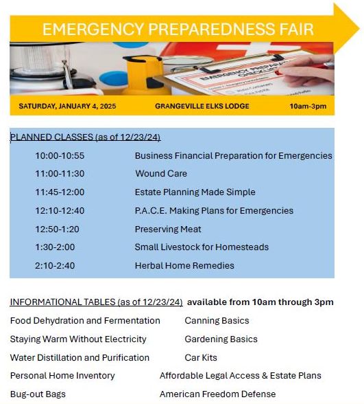 Thank you for attending the Grangeville area community Emergency Preparedness Fair, 4 Jan 2025